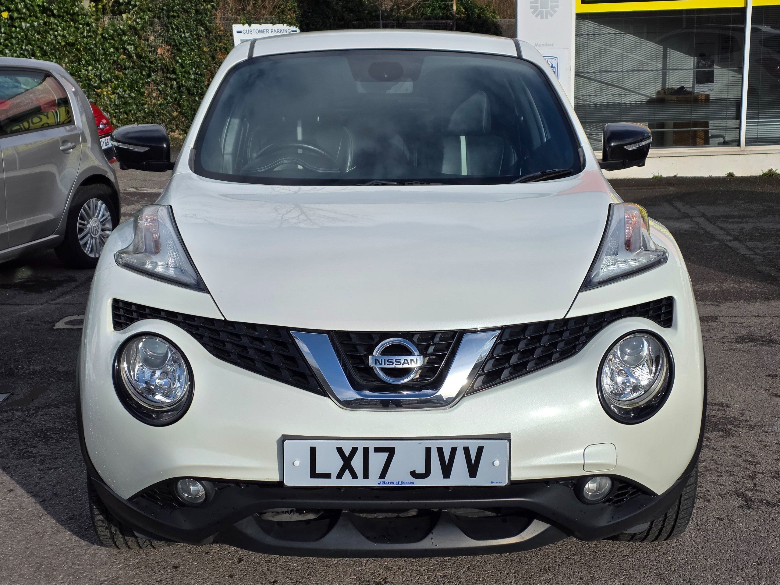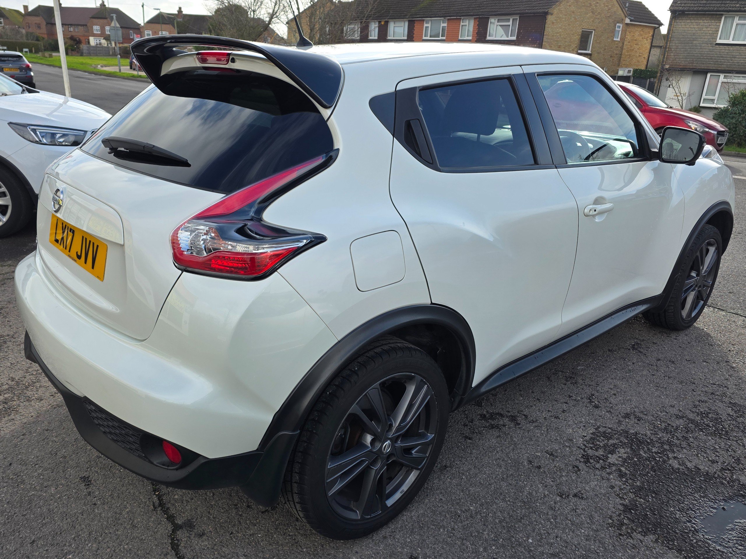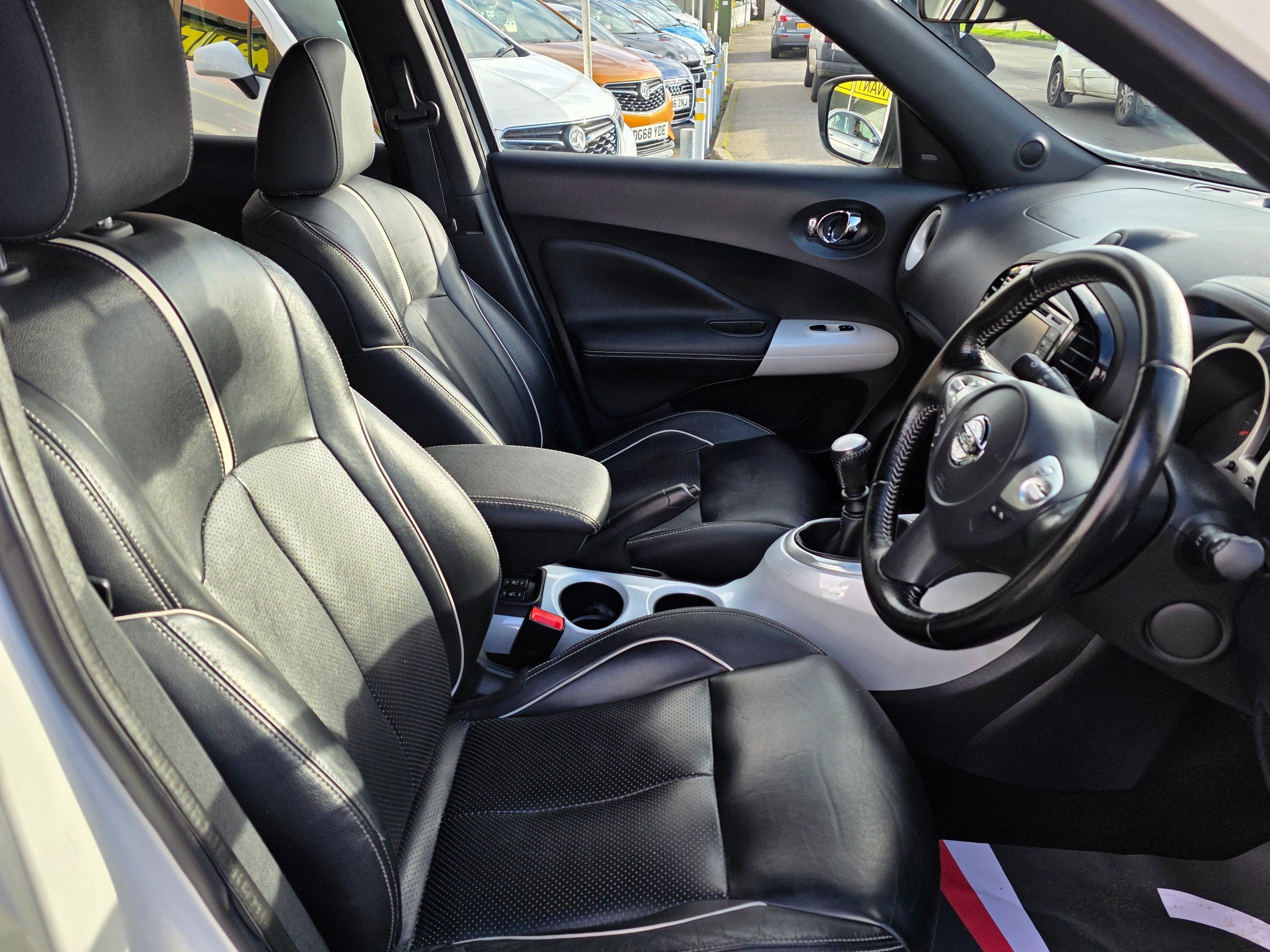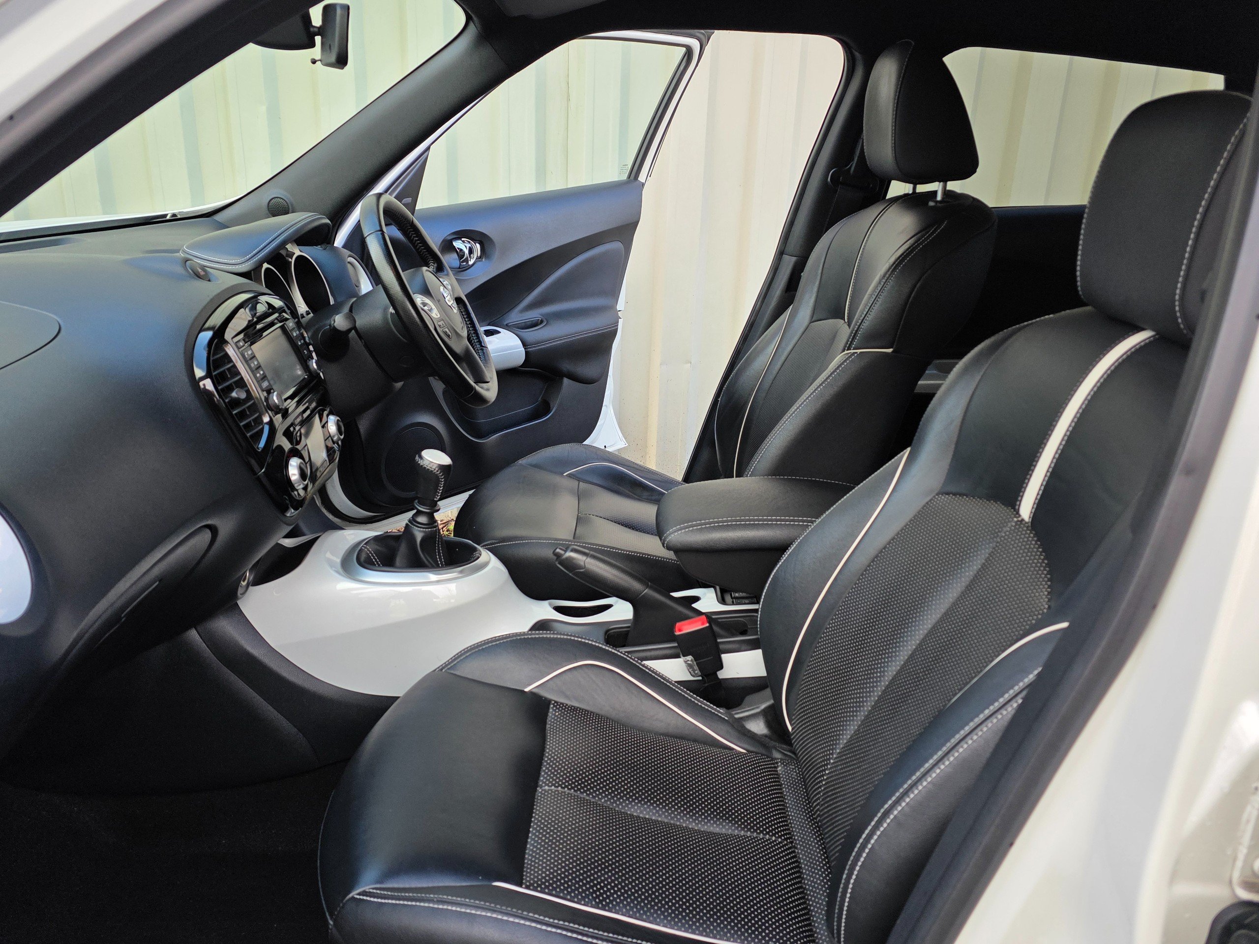 Very special Juke, finished in metallic white, factory fitted roof spoiler, factory fitted upgraded leather seats, factory fitted unique interior finishes. One of a kind. Prepared to our very high standards and suplied with an award winning warranty for 6 months. This 2017 Nissan Juke 1.2 DIG-T Tekna SUV has only 44037 miles on it and runs on Petrol with a manual transmission, making it a reliable and efficient choice for those seeking adventure. With 5 seats and 5 doors, this SUV offers plenty of space for passengers and cargo. The MOT expires on 19/05/2026, giving you peace of mind for years to come. ULEZ compliant, this vehicle is environmentally friendly and ready to take on the city. Including features such as 12V Socket in the front, AUX Socket for MP3 Player, DAB and Internet Radio with 6 Speakers, and NissanConnect, staying entertained and connected on the road is effortless. Additionally, the Telephone - Bluetooth Integration ensures safe and convenient communication while driving. With its sleek design and practical features, this Nissan Juke SUV is the perfect combination of style and functionality.