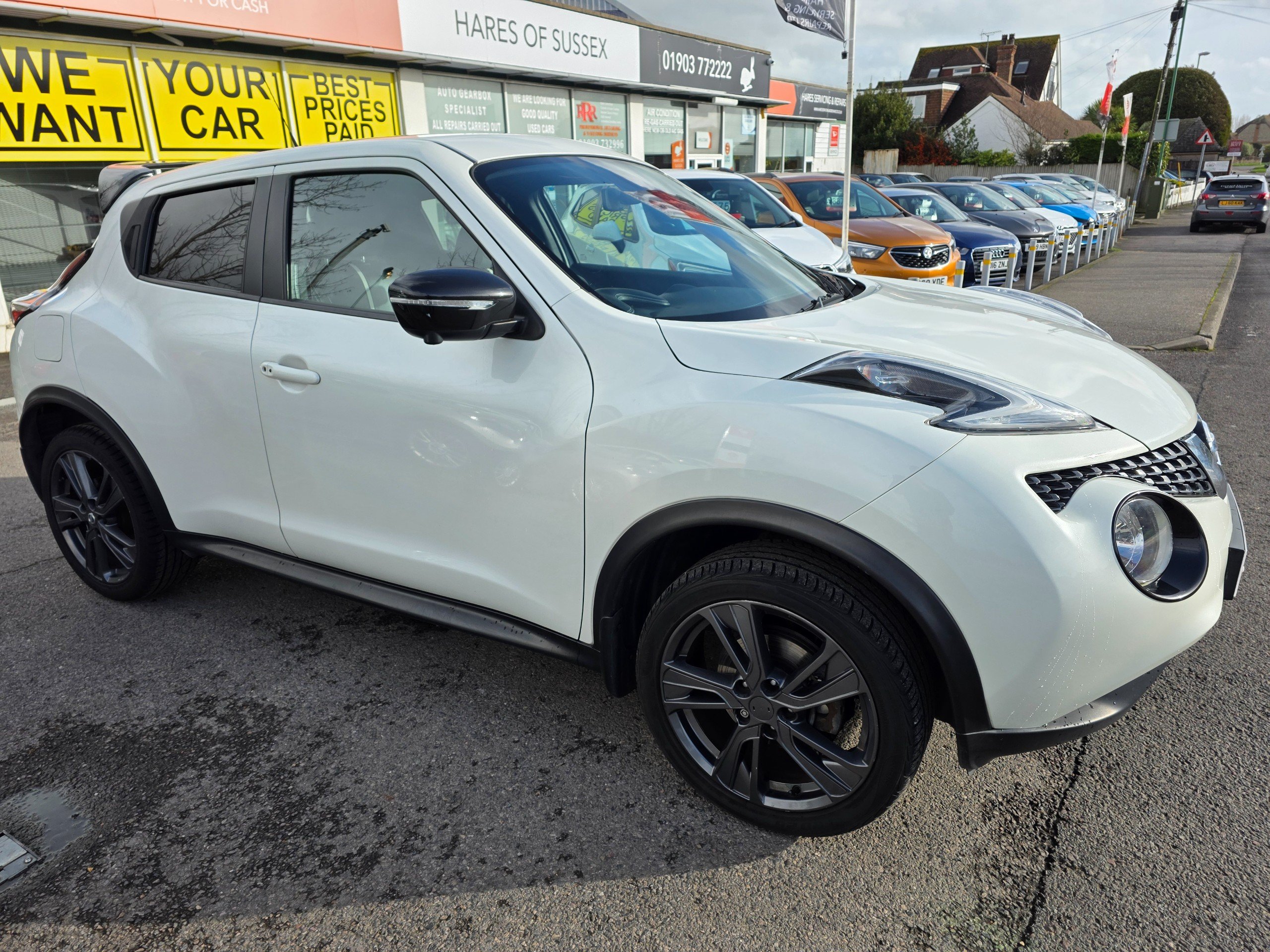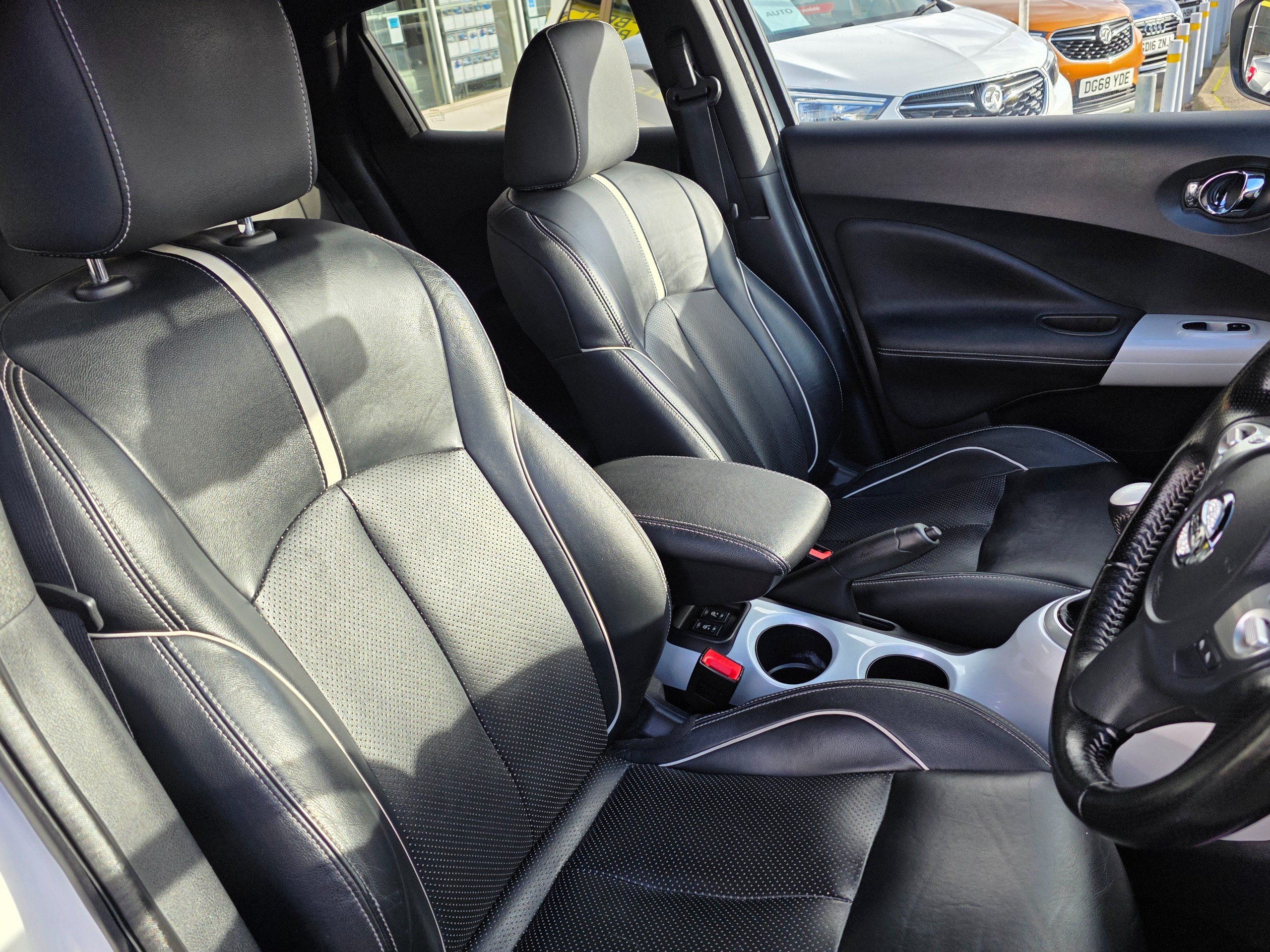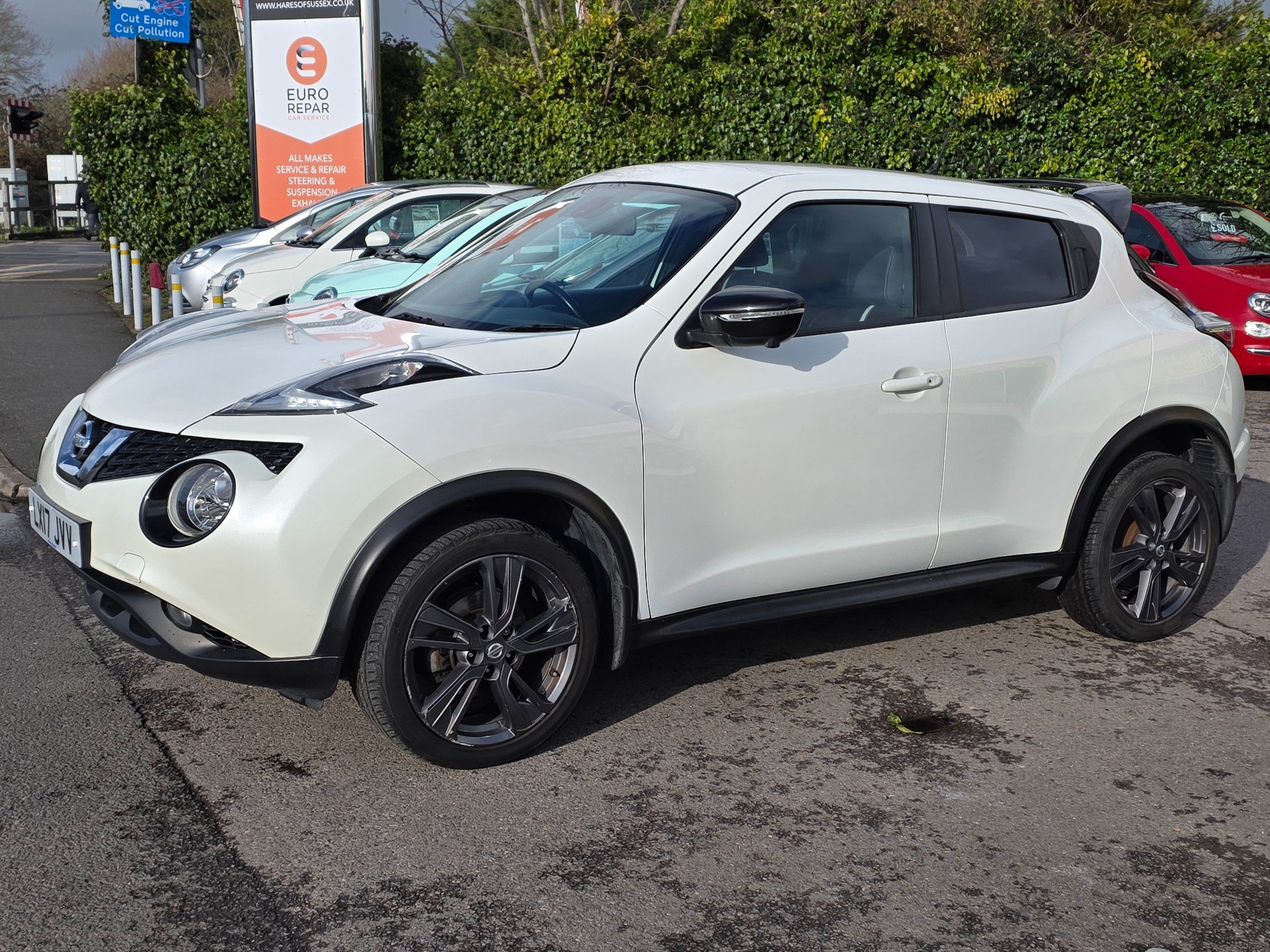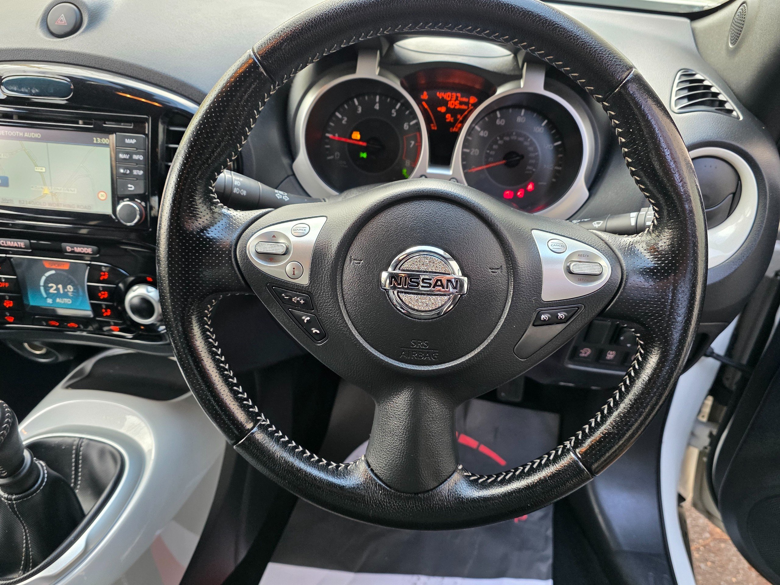 Very special Juke, finished in metallic white, factory fitted roof spoiler, factory fitted upgraded leather seats, factory fitted unique interior finishes. One of a kind. Prepared to our very high standards and suplied with an award winning warranty for 6 months. This 2017 Nissan Juke 1.2 DIG-T Tekna SUV has only 44037 miles on it and runs on Petrol with a manual transmission, making it a reliable and efficient choice for those seeking adventure. With 5 seats and 5 doors, this SUV offers plenty of space for passengers and cargo. The MOT expires on 19/05/2026, giving you peace of mind for years to come. ULEZ compliant, this vehicle is environmentally friendly and ready to take on the city. Including features such as 12V Socket in the front, AUX Socket for MP3 Player, DAB and Internet Radio with 6 Speakers, and NissanConnect, staying entertained and connected on the road is effortless. Additionally, the Telephone - Bluetooth Integration ensures safe and convenient communication while driving. With its sleek design and practical features, this Nissan Juke SUV is the perfect combination of style and functionality.