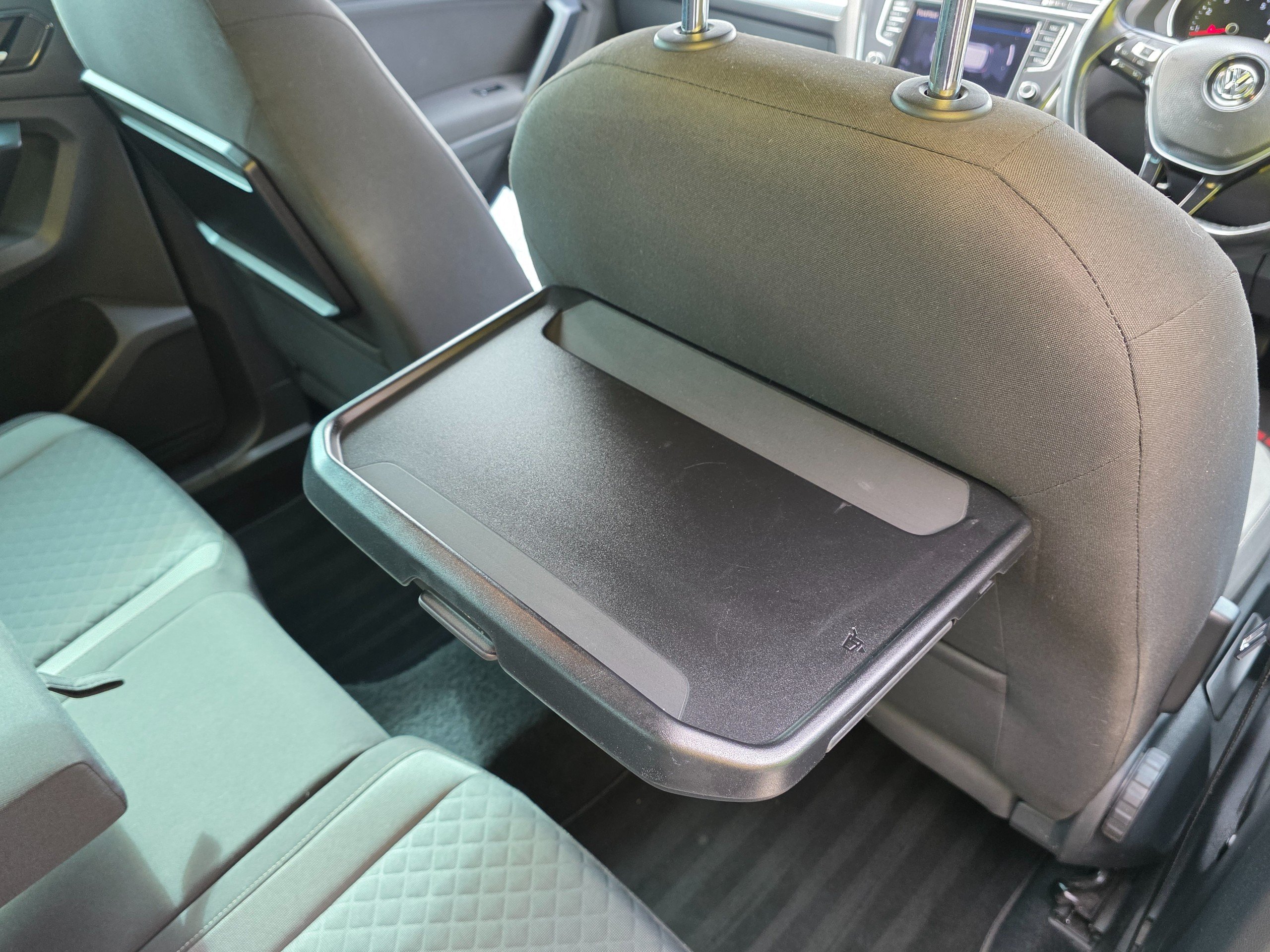- Tray on Rear of Front Seats - Rubberised for Non Slip with Cup Holder to the Side - Cable Secure Hook to Left